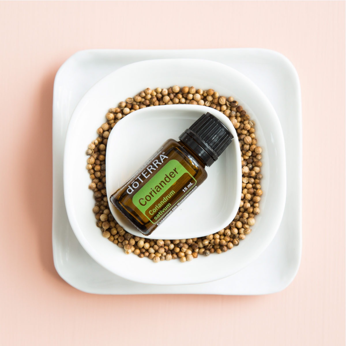 Кориандърът е свежа, ароматна билка, която се използва от векове. Популярна готварска подправка, само капка от етерично масло от кориандър може да трансформира всяко ястие! Релаксиращите му свойства са превъзходни за след тренировка, при масаж или вана, а също така е полезен при вътрешно приложение след обилно хранене. Освен това, кориандърът е известен с това, че поддържа кожата чиста и дава успокояващо усещане на тялото. Неговият сладникав, тревист аромат може да бъде както релаксиращ, така и стимулиращ.